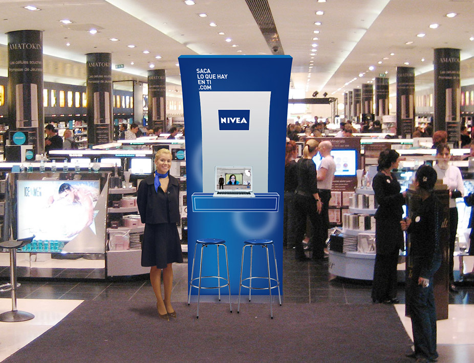 Stand con azafata (presentación de aplicación en internet)